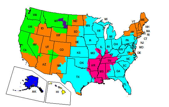 Below is a map showing the FedEx Ground Shipping time table. Locate where you live in the colored area & you'll be able to determine the transit time for your package. This map is only an estimate and should be relied on accordingly.